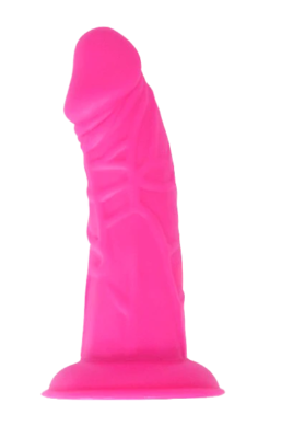 Dildo curvo de silicona con ventosa. Diseño realista, tamaño moderado y compatible con arneses, ideal para quienes inician en el uso de juguetes.